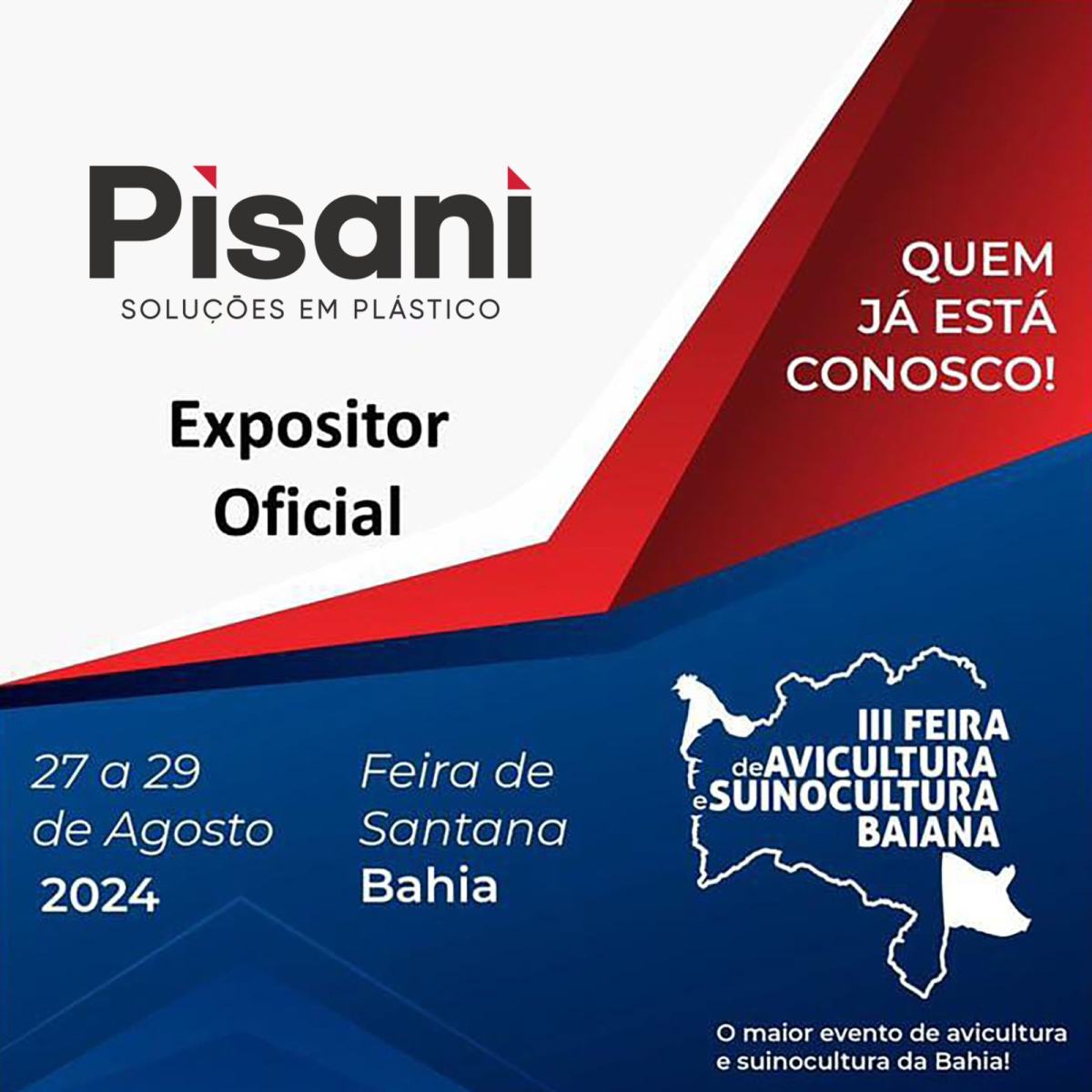Pisani mais uma vez expondo nas feiras do Nordeste! Desta vez estaremos presentes no maior evento de avicultura e suinocultura do Brasil. Anote esta data em sua agenda!