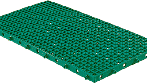 Piso plástico fácil de manejar y muy resistente. Compuesta por piezas que se ensamblan perfectamente, formando superficies de varias dimensiones y formatos. Practicidad, comodidad e higiene en el montaje de corrales para cerdos. Utiliza 8 piezas por m².