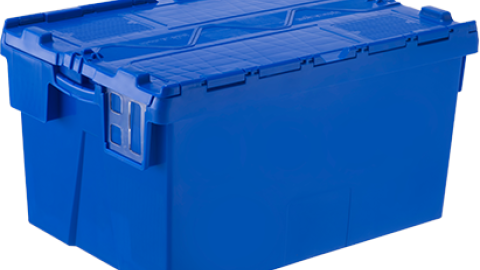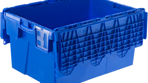 Contenedor para uso general. La tapa ya está incorporada en el contenedor. Incluye un espacio para colocar etiqueta autoadhesiva (en las caras menores), como también un espacio para colocar una etiqueta con código de barras (en las caras mayores), y permite utilizar un sellado inviolable con las tapas cerradas. La tapa está adaptada al uso de banda. Permite reducir el 61 % del volumen en el apilamiento de retorno.