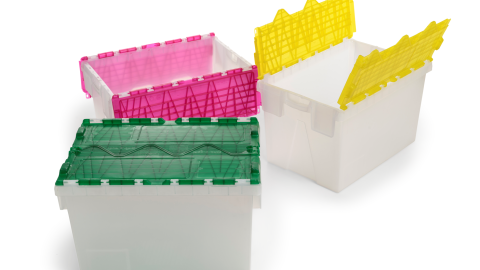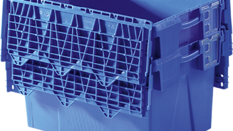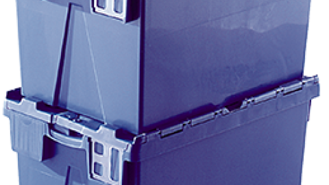 Caixa plástica para uso geral. A tampa já está agregada ao contentor. Possui local para cartão de identificação (cartão de 85 x 100 mm colocado em pé). Permite a colocação do lacre inviolável com as tampas fechadas. Permite 70% de redução de volume no empilhamento de retorno. Locais texturizados para colocar etiqueta adesiva (tampas e corpo).