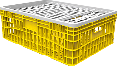 Gaiola plástica de 100 litros produzida em PEAD, especialmente desenvolvida para o transporte de aves vivas. Possui grande resistência a intempéries. Proporciona segurança, conforto e ventilação adequada para aves vivas. Evita choques e hematomas durante o transporte. A tampa permite acesso rápido e fácil ao interior da gaiola.