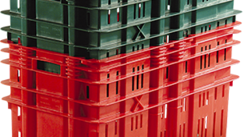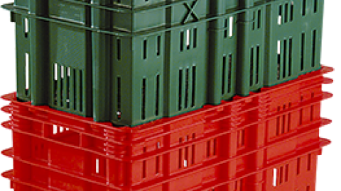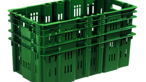Caixa plástica vazada 75 L com alças para uso geral. Permite 50% de redução de volume no retorno. fácil higienização e esterilização. Possui local para etiqueta adesiva.