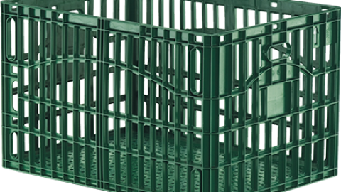 Caixa plástica vazada 180 L com alças para mercadorias grandes que racionaliza manuseio, transporte e armazenagem dentro da cadeia logística. Contornos internos totalmente isentos de cantos vivos. Oferece ventilação adequada para o transporte de mercadorias "in natura". Possui alças de transporte verticais nas laterais maiores.