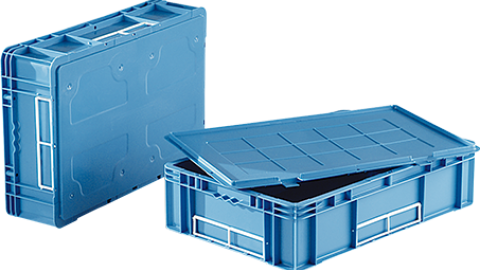 Para uso industrial e afins. Pode ser utilizado com tampa. Possui local para cartão de identificação (50/60 mm x 210 mm). Permite colocação de lacre quando usado com tampa (em 4 lados). Possui local texturizado para etiqueta auto adesiva. Não é oferecido com as alças abertas. Face externa do fundo totalmente lisa para facilitar transporte em esteiras. Empilhamento compatível para palete 1200 x 1000 com os contentores CN 6425 e CN 4315.