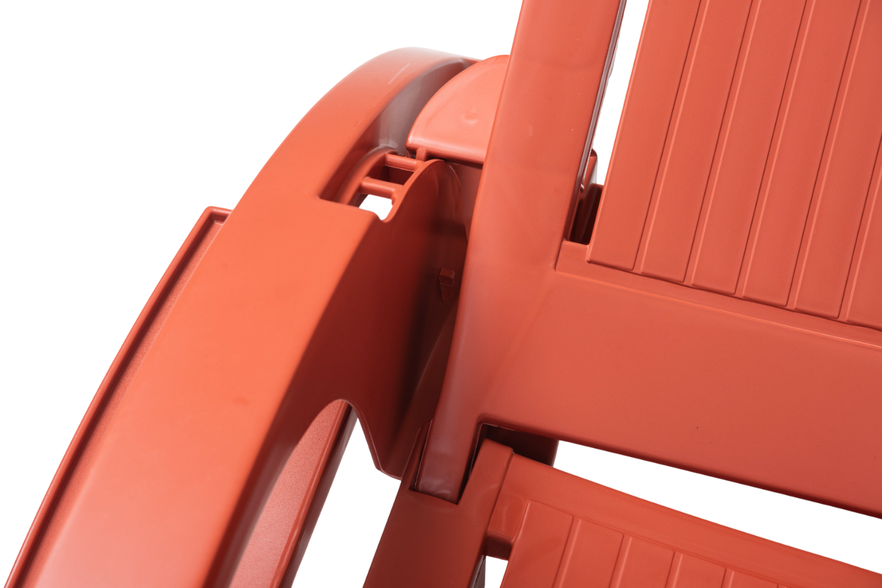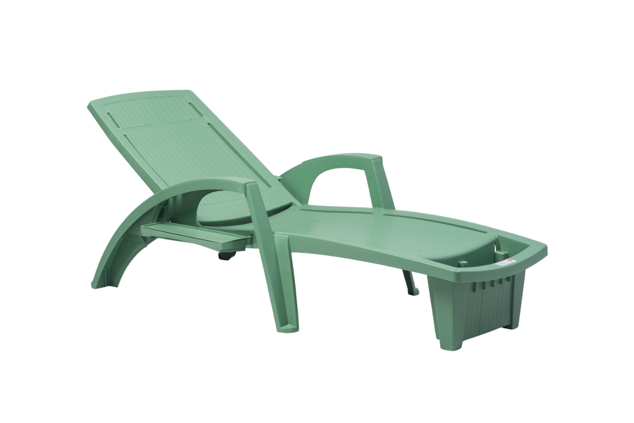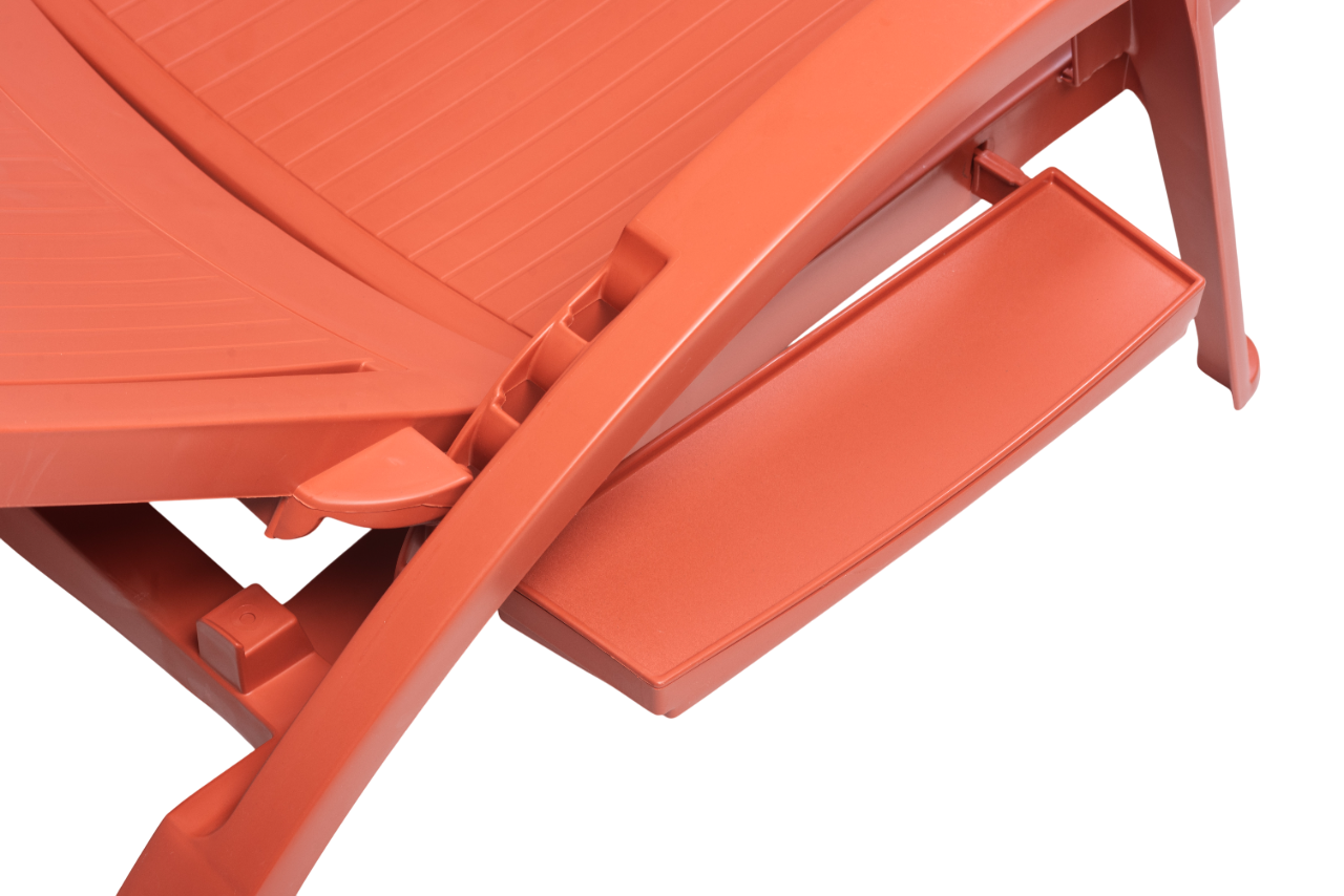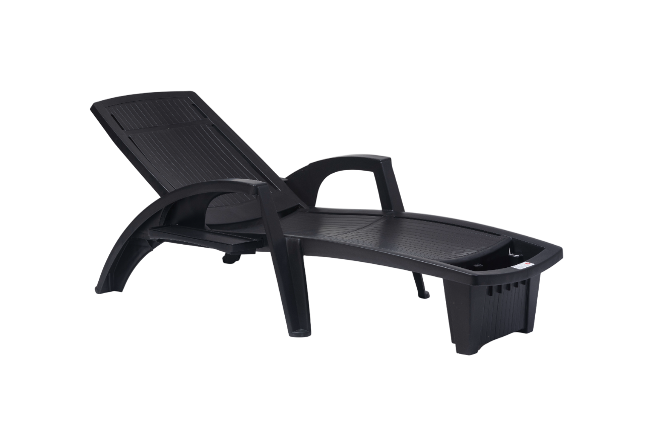 Resistente, leve e fácil de limpar, permite empilhamento entre si, possui encosto reclinável em 4 estágios, roletes para deslocamento, porta-objetos e apoio utilizando a tampa do porta-objetos como base.