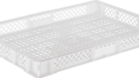 Caixa plástica vazada empilhável 10 litros, especial para armazenamento e congelamento de pães quando fornecidos na versão aberta.
